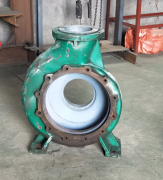 蘭州日爾美精細(xì)化工有限公司循環(huán)水泵房原有的2臺(tái)200噸氟塑料泵(江蘇某泵廠生產(chǎn)),在節(jié)前出現(xiàn)了流量減小、泵體泄露、堵塞等現(xiàn)象,嚴(yán)重影響該廠日常的生產(chǎn)需求,所以特聯(lián)系我廠對(duì)這2臺(tái)泵,進(jìn)行診斷并維修。